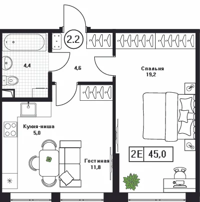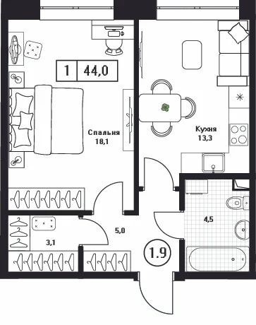 35 минут на авто до ВДНХ